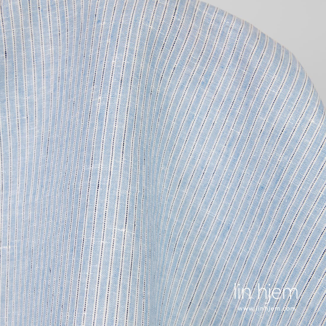 • Lyseblått 100% linstoff, stripete.