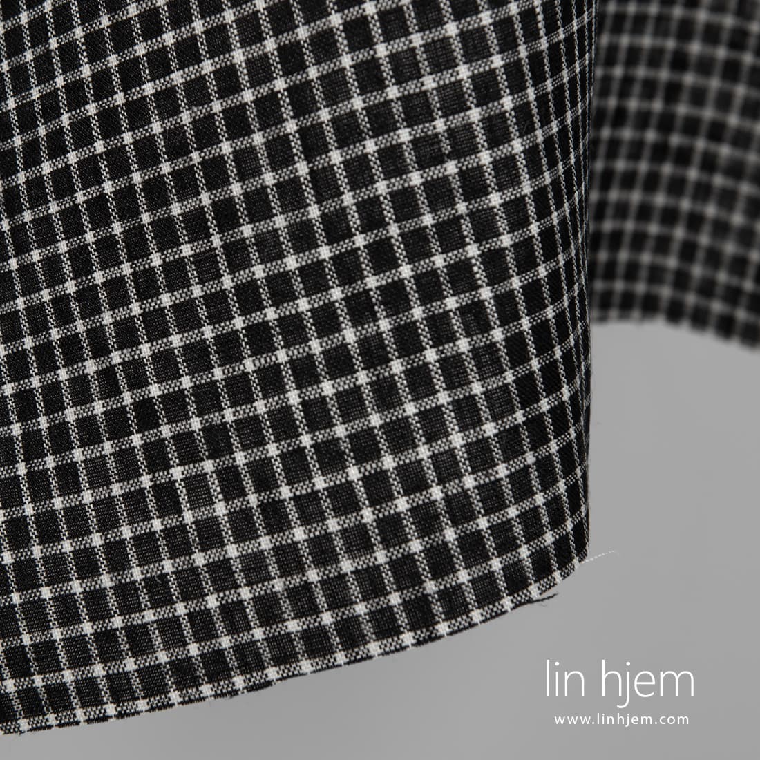 • Svart linstoff med hvite ruter for å sy klær, hjemmetekstiler