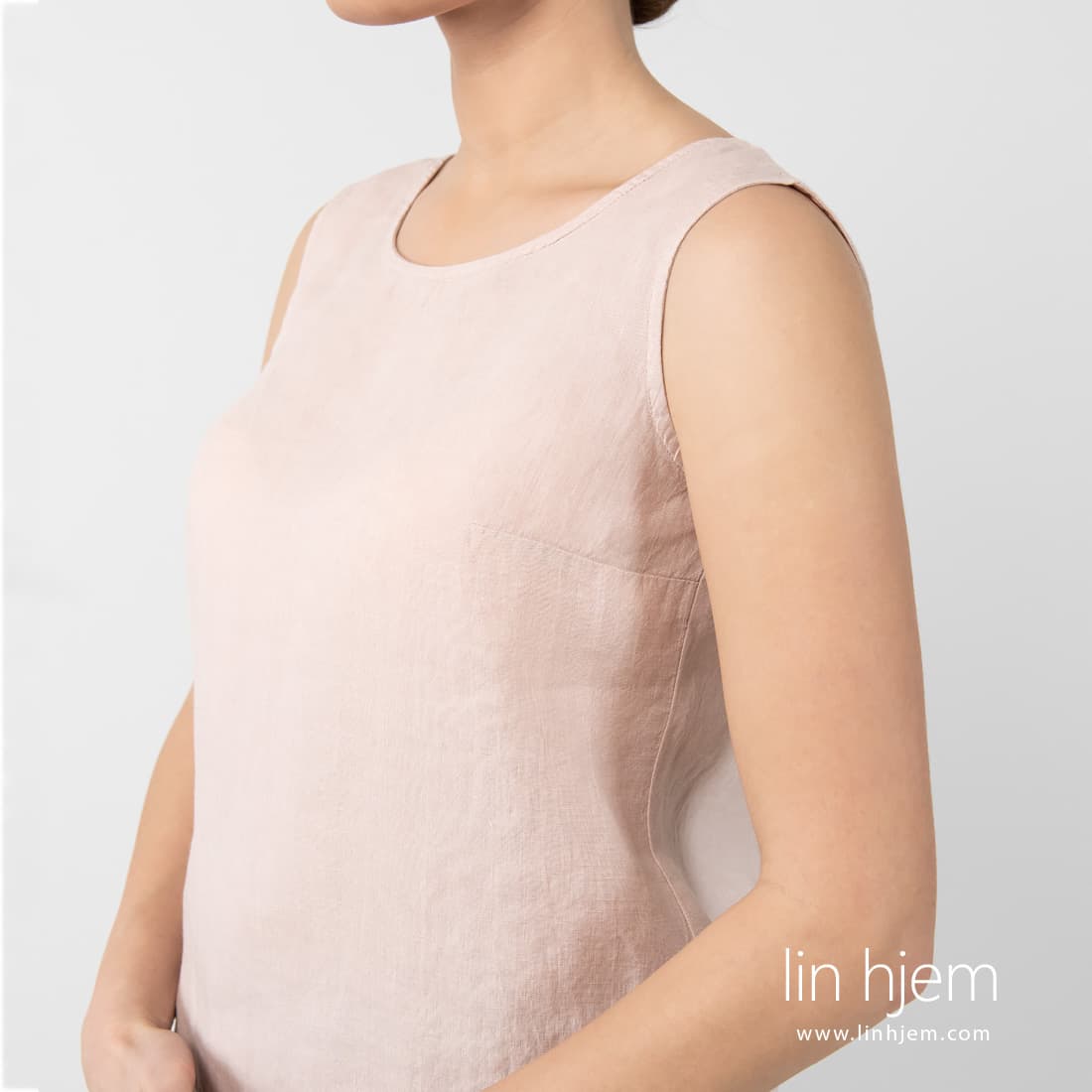- Detaljer: uten ermer, rund hals, festes med en knapp på baksiden, folder på baksiden
