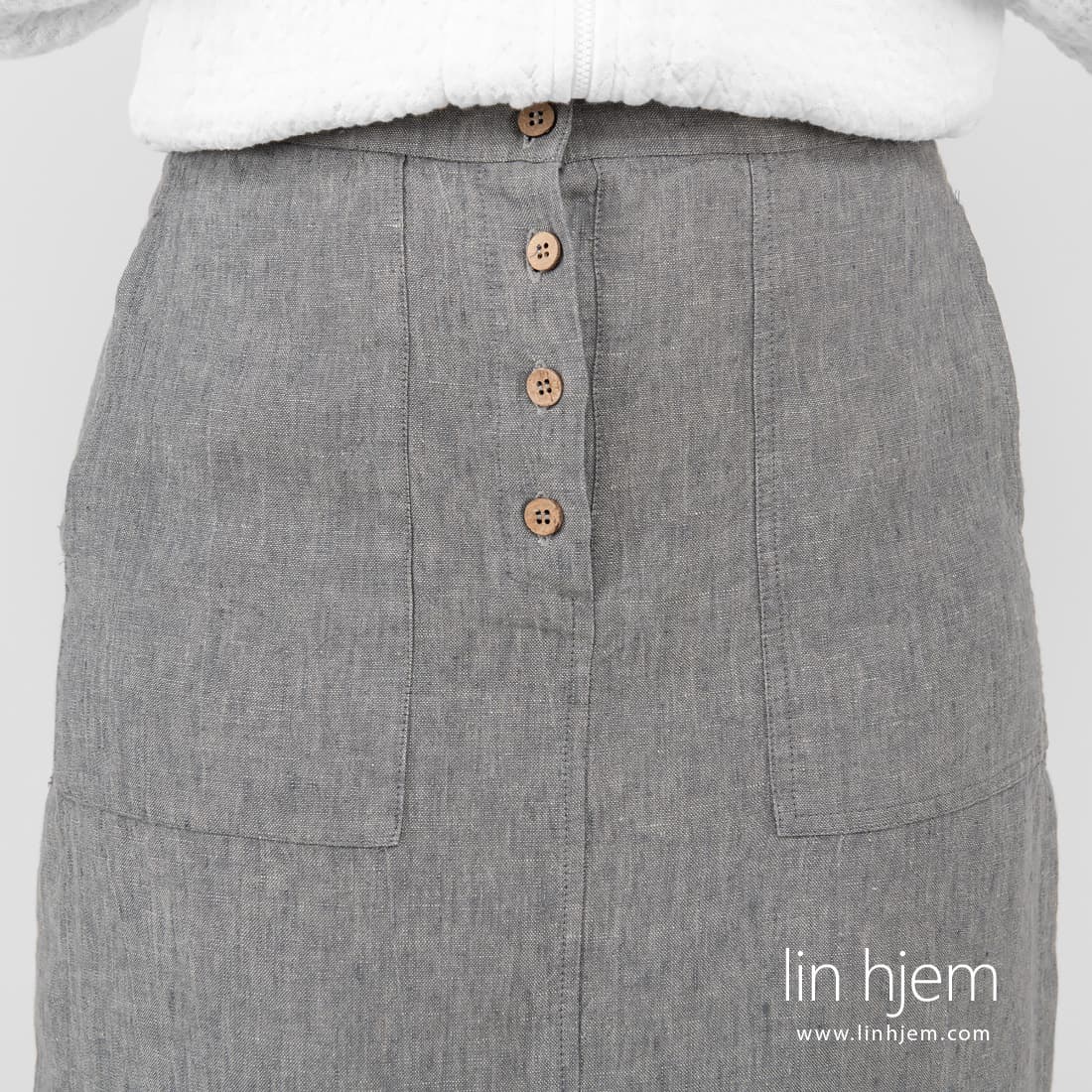 - Detaljer: lommer, knappelukking foran, splitt i sidene, bred strikk bak i midjen