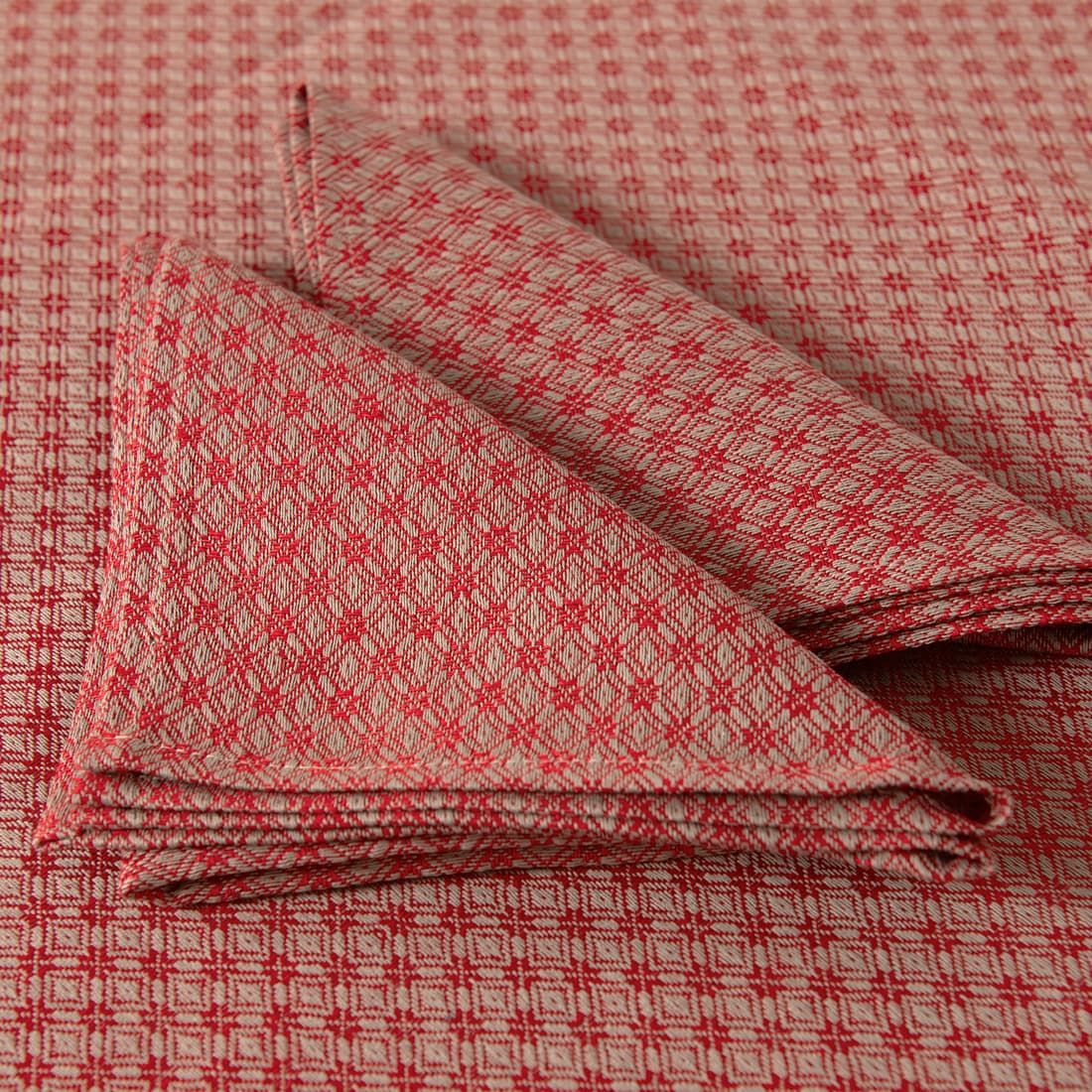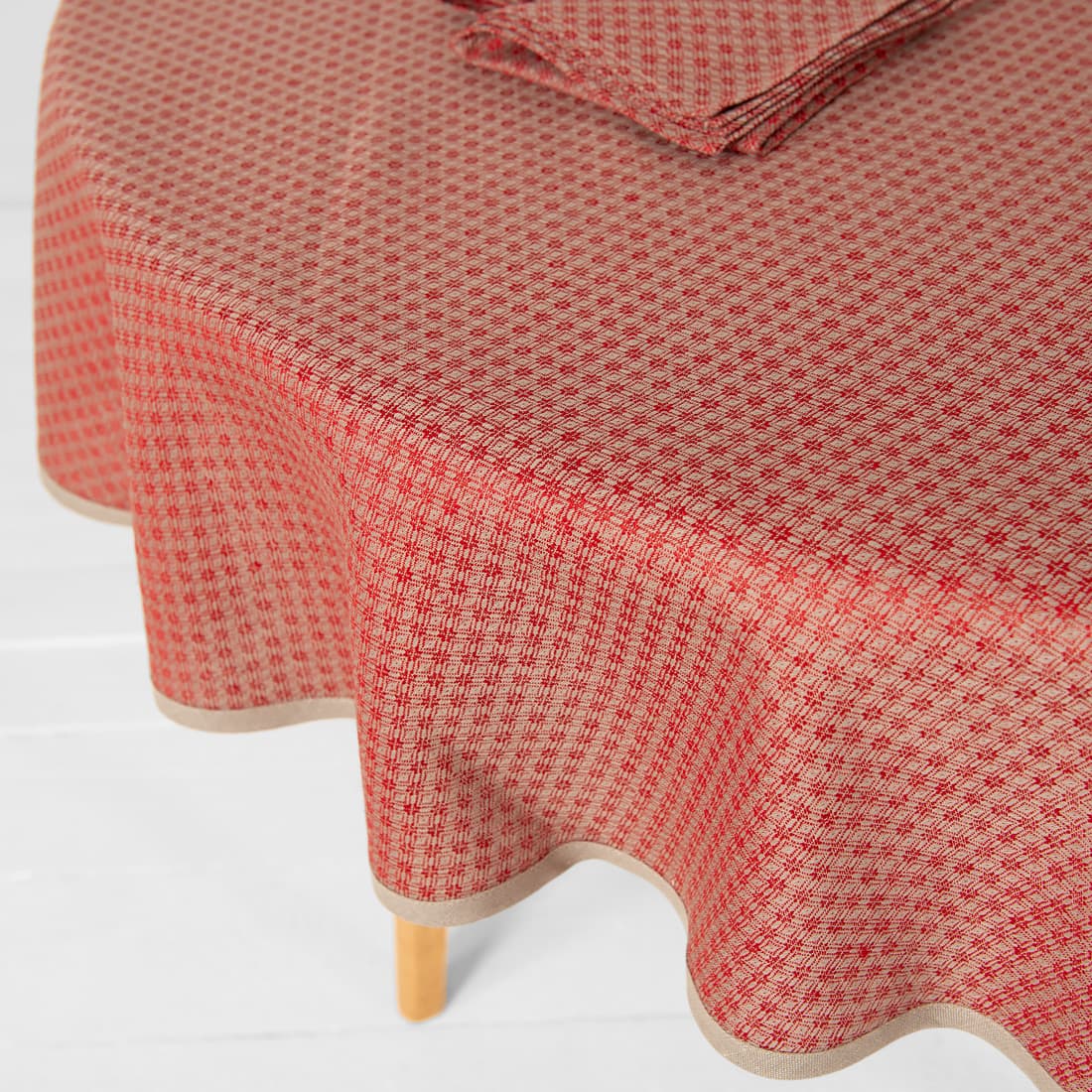• TONY halvlin rund (oval) rød-beige duk og servietter