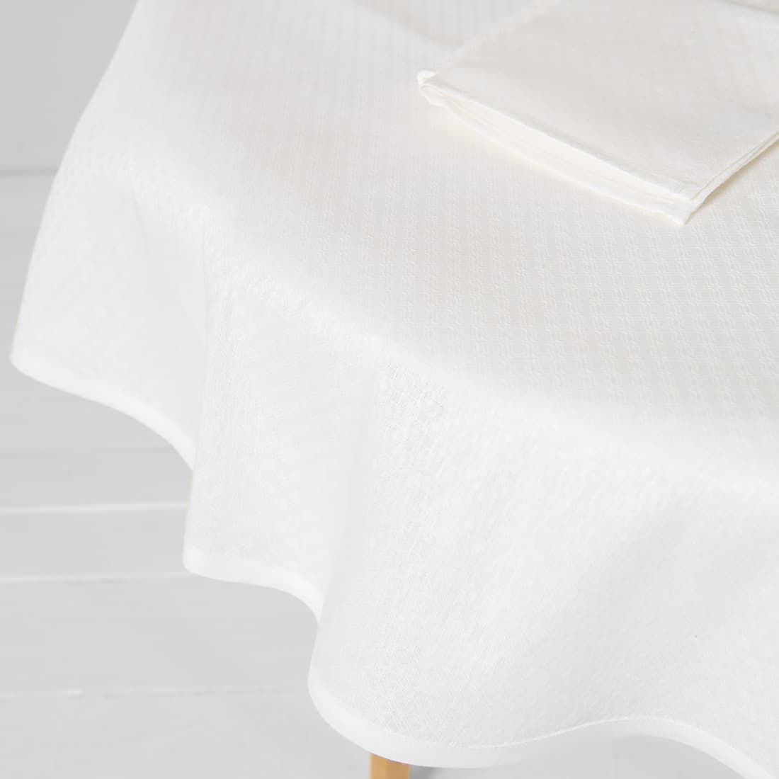 • TONY halvlin rund (oval) snøhvitt mønstret duk