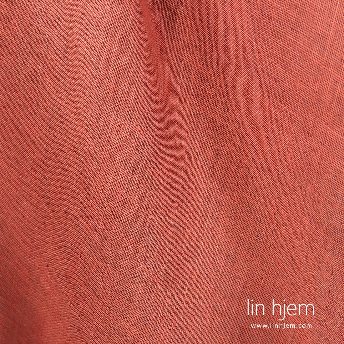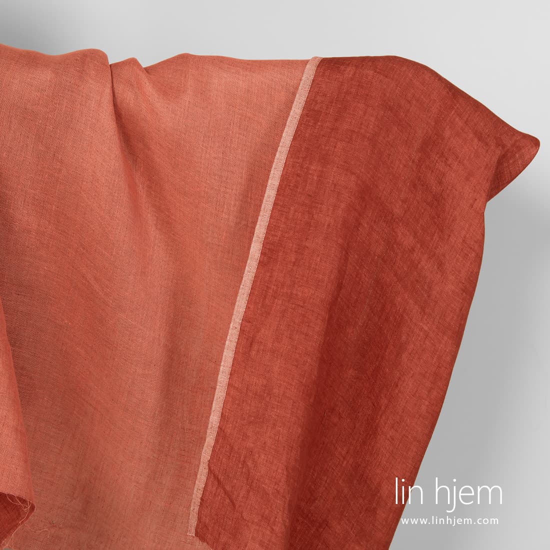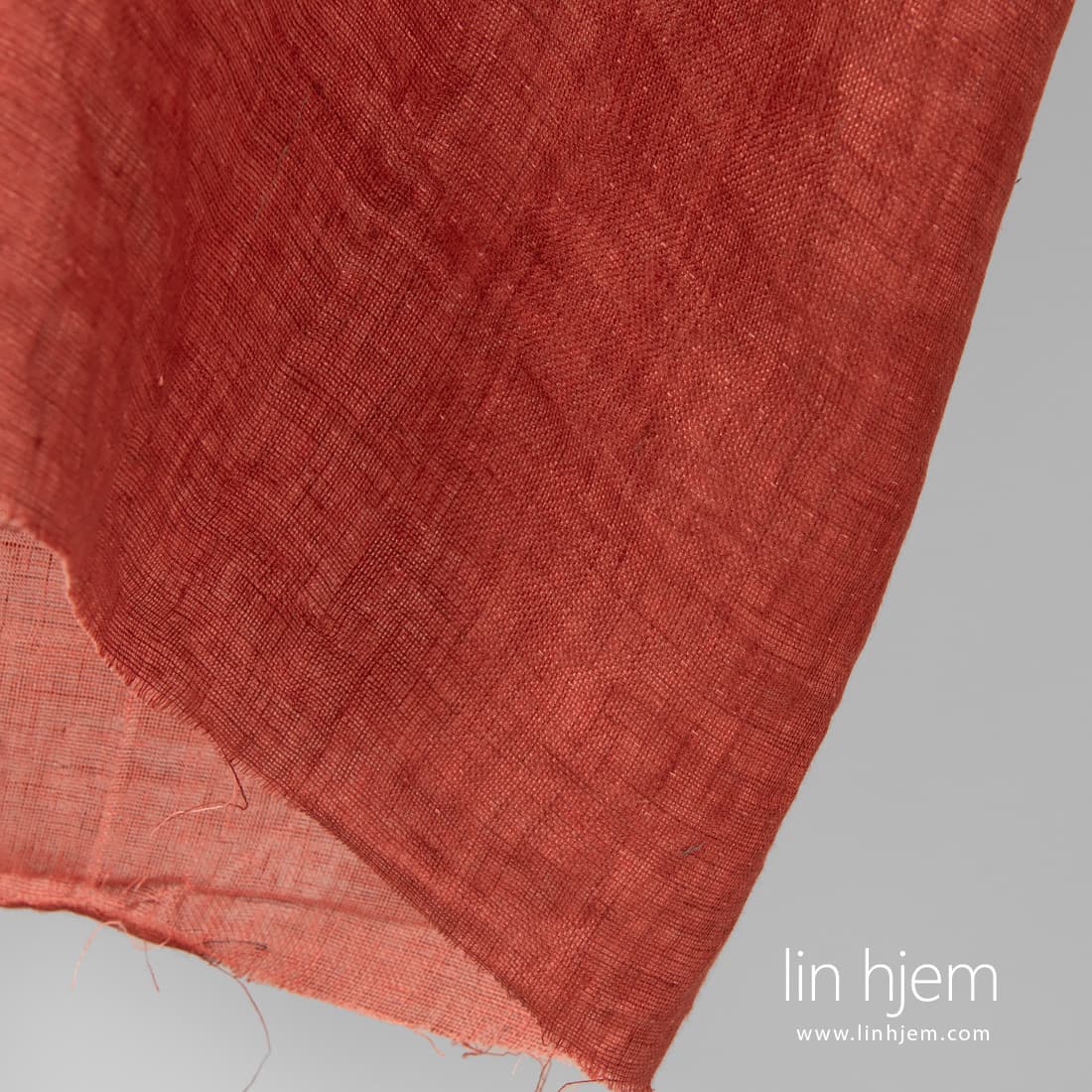 Tosidig rødt linstoff, 2-lag. Den ene siden i mørk rød farge, den andre siden laget av lyserosa garn. Tettvevd, holdbart, middels tykkelse.