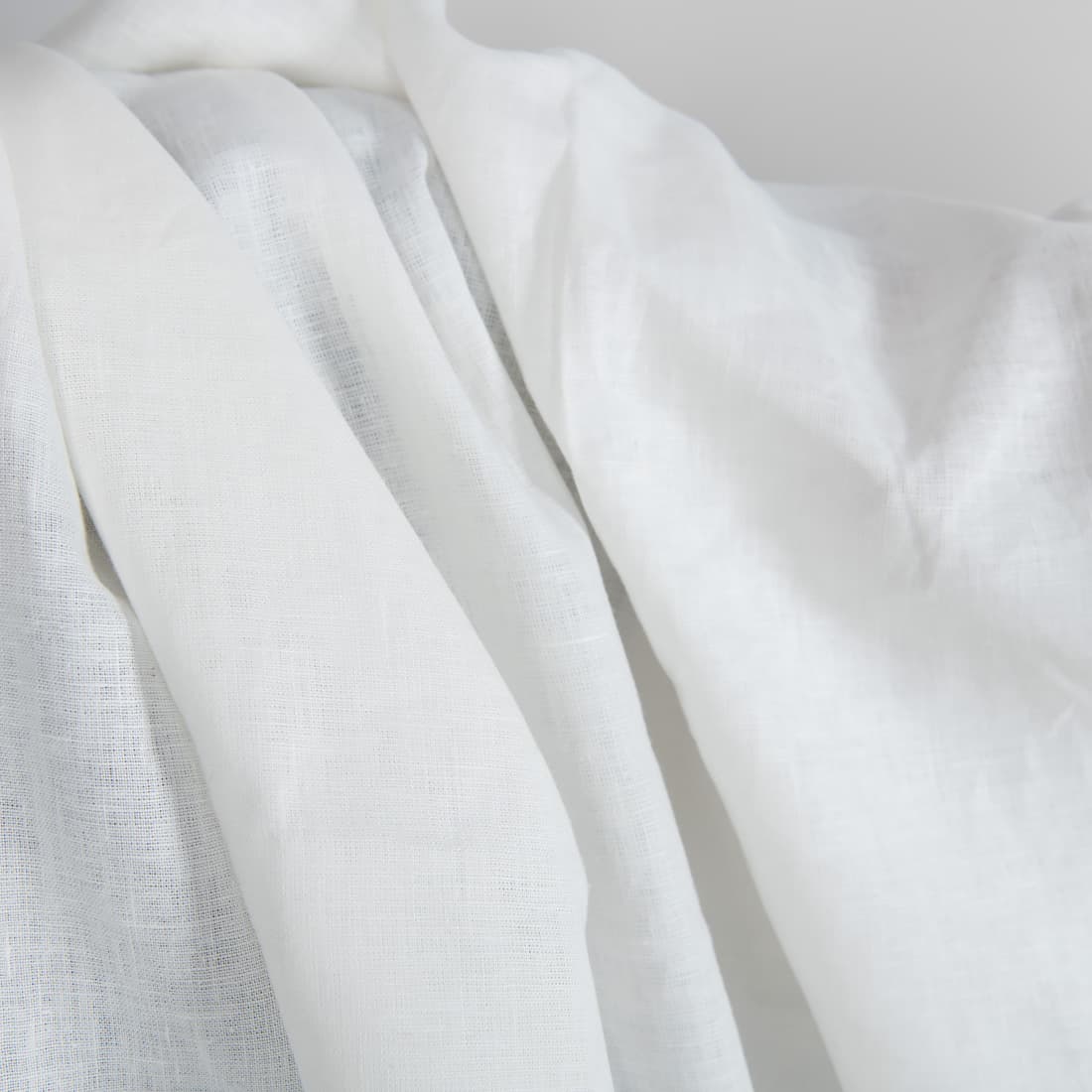 Melkehvit linstoff. Medium tykk og vekt. En av vår mest populær metervare. Passer til forskjellige teksil produkter til hele hjemmet, klær og accessories.