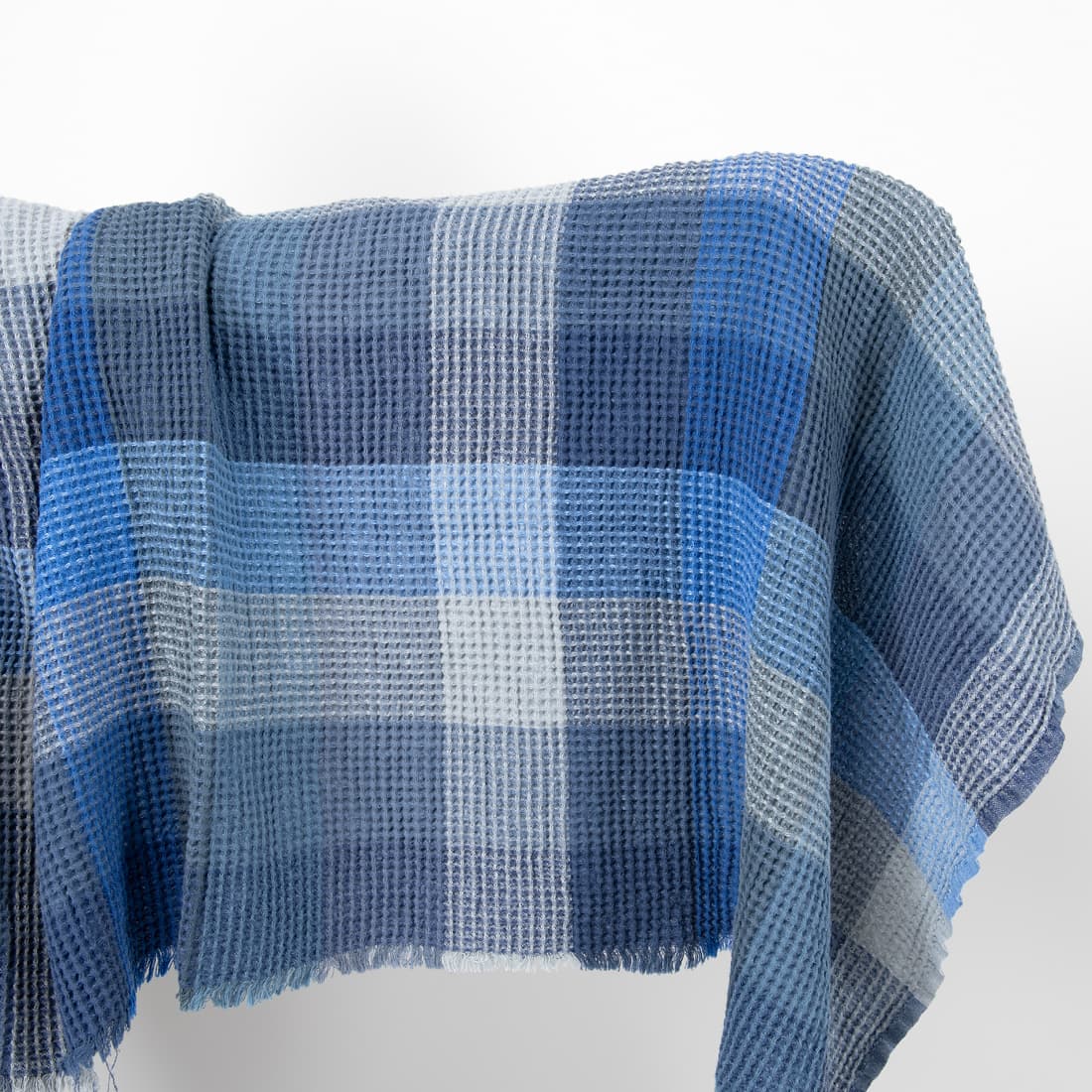 - Farge: vevd flere nyanser av blågrått og blått garn