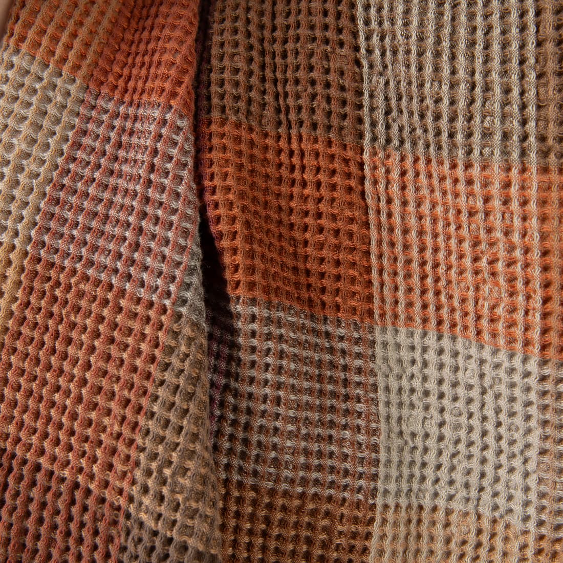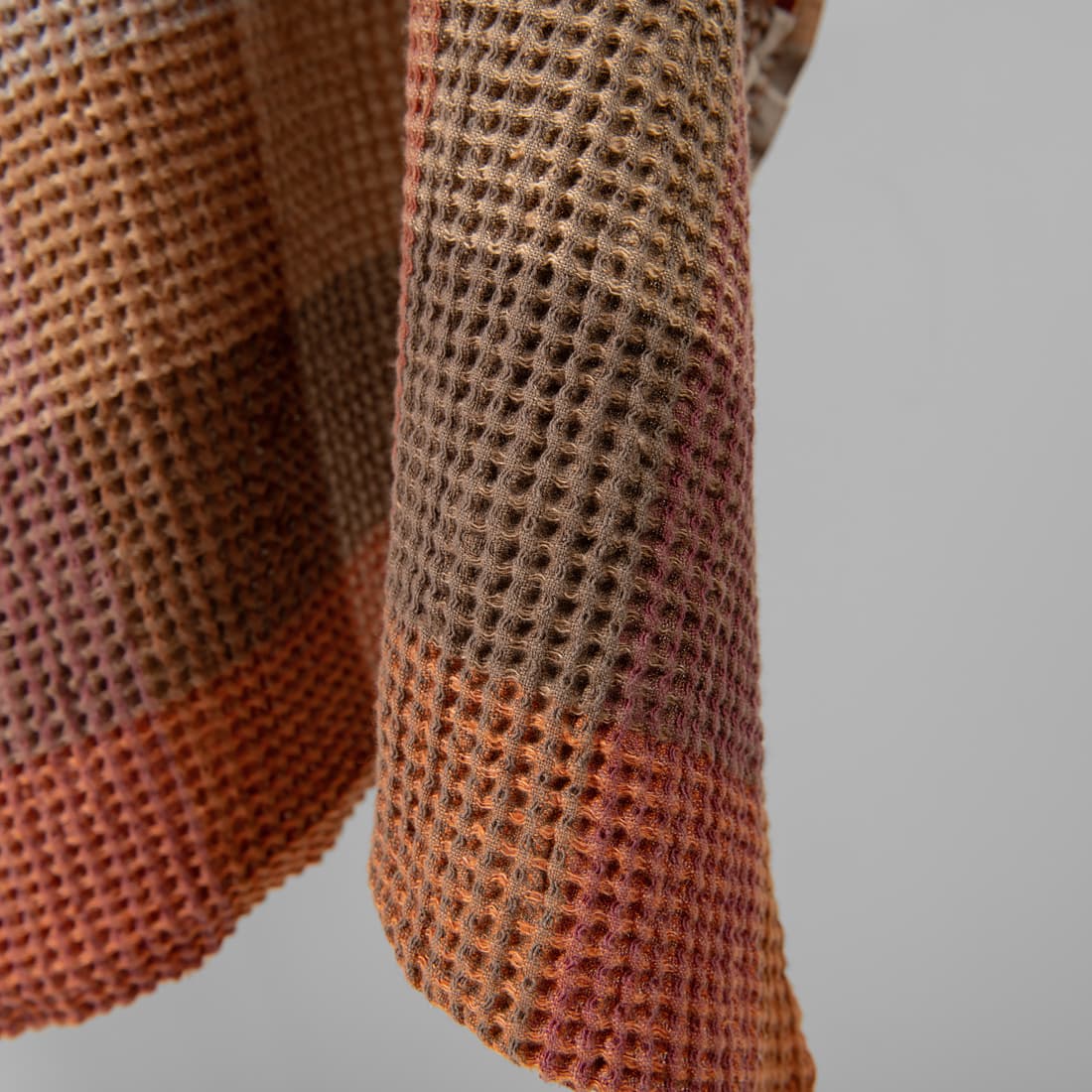 - Farge: vevd garn i granatrød, brunoransje og flere nyanser av brunt