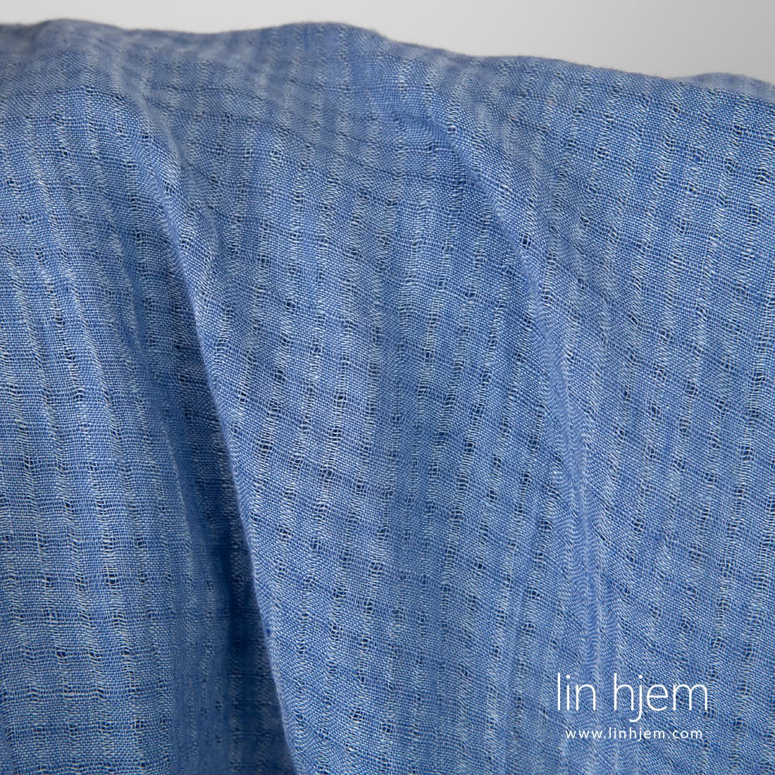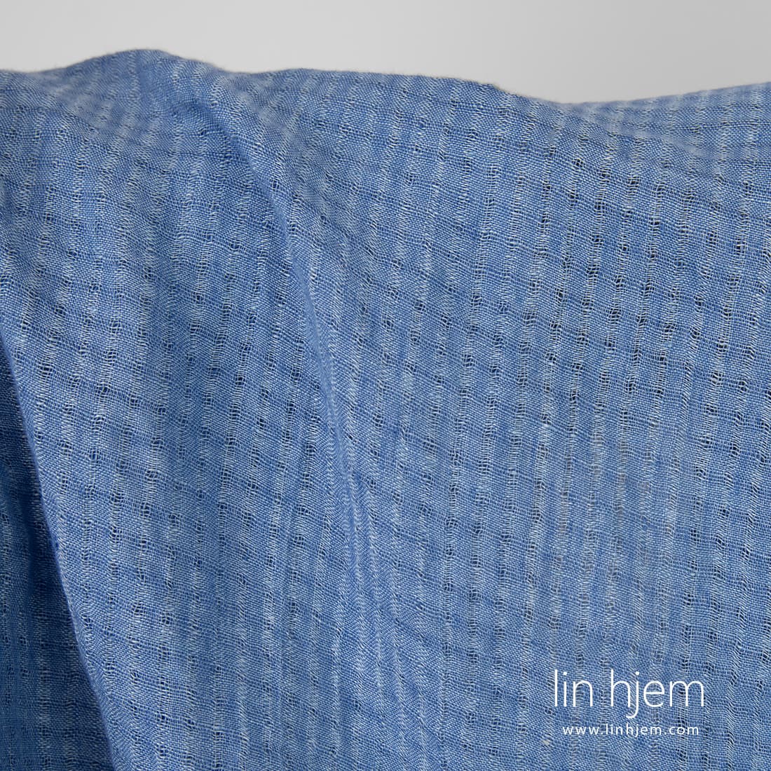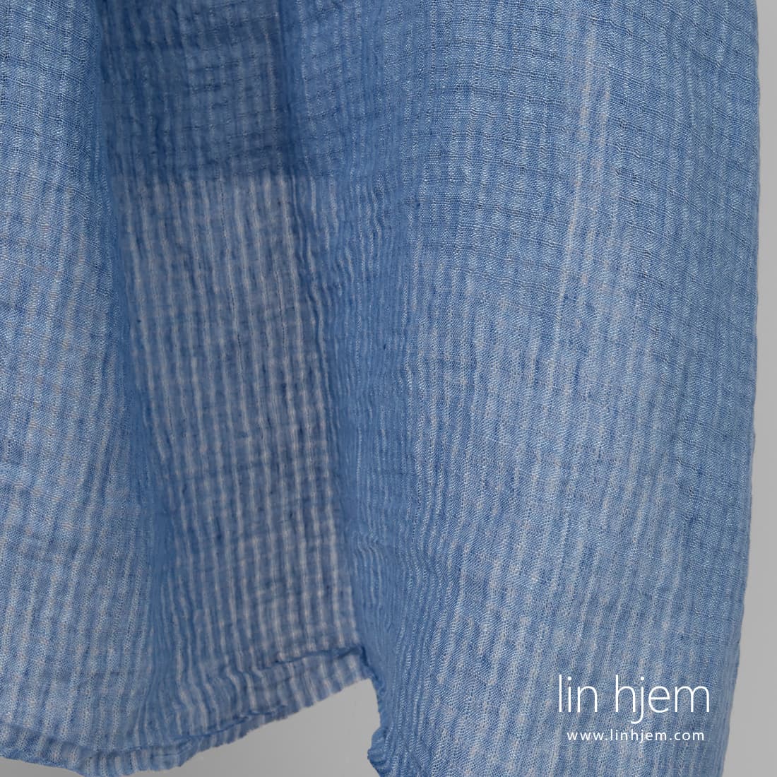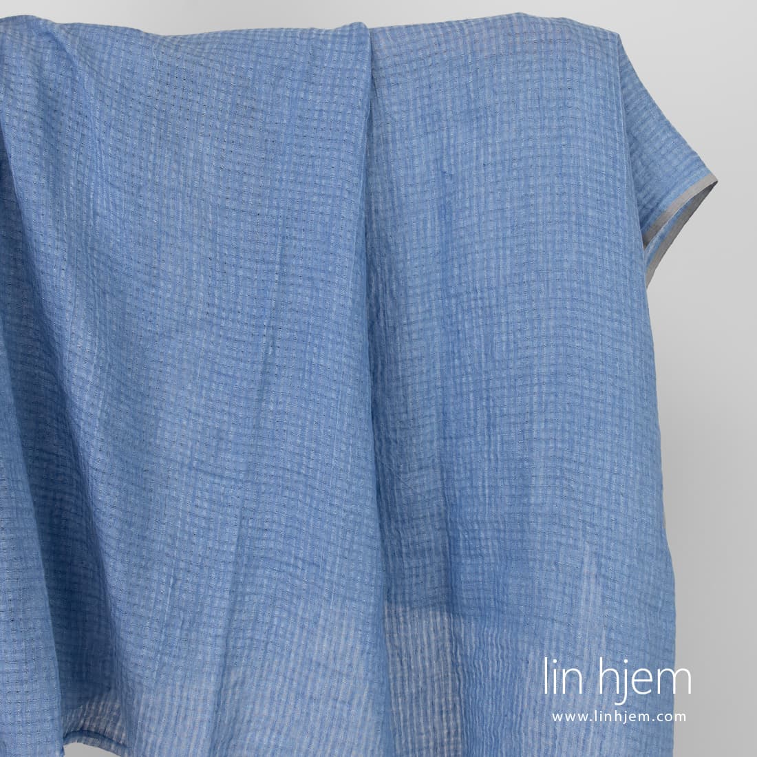 • Vasket blåaktig linstoff i gjennomsiktige ruter.
