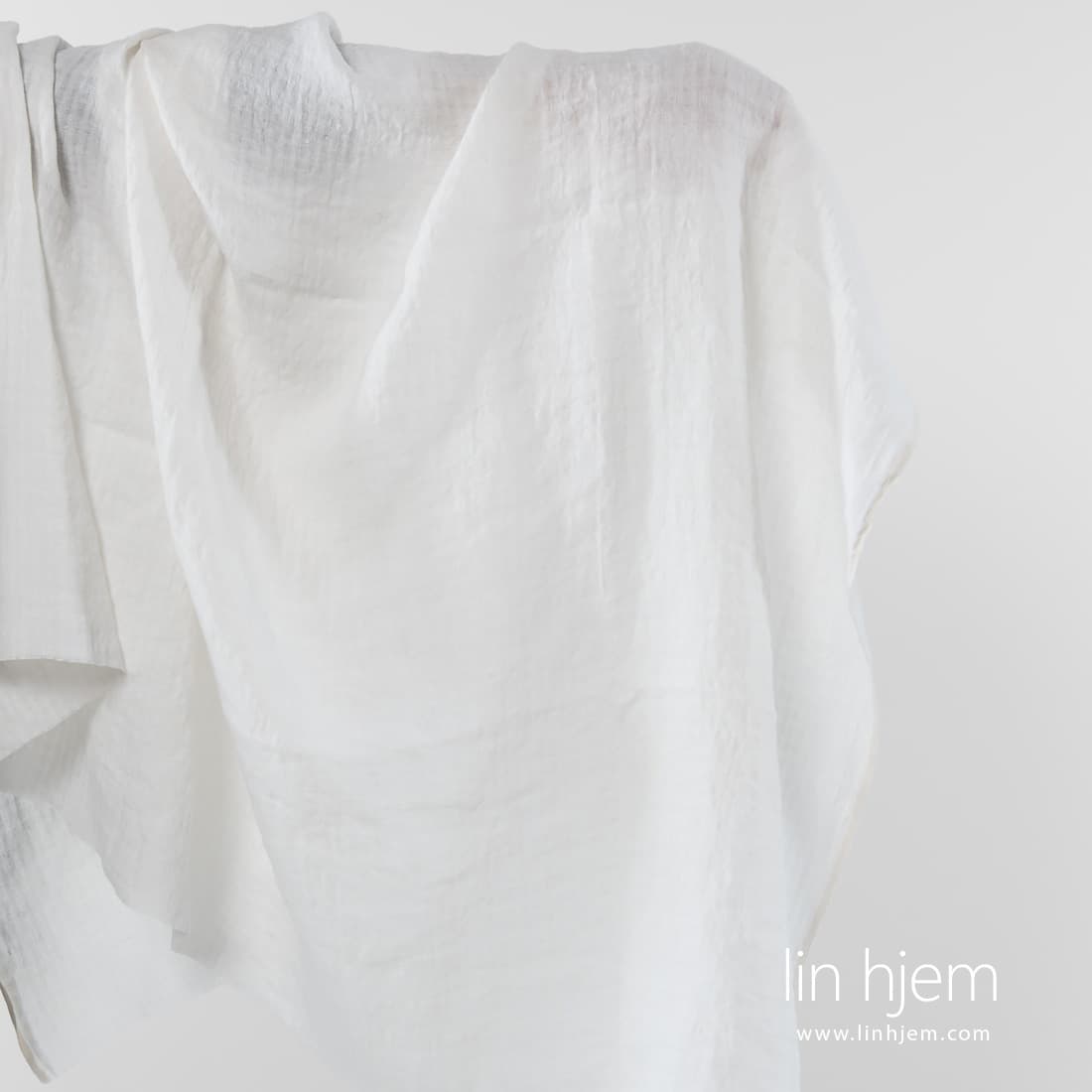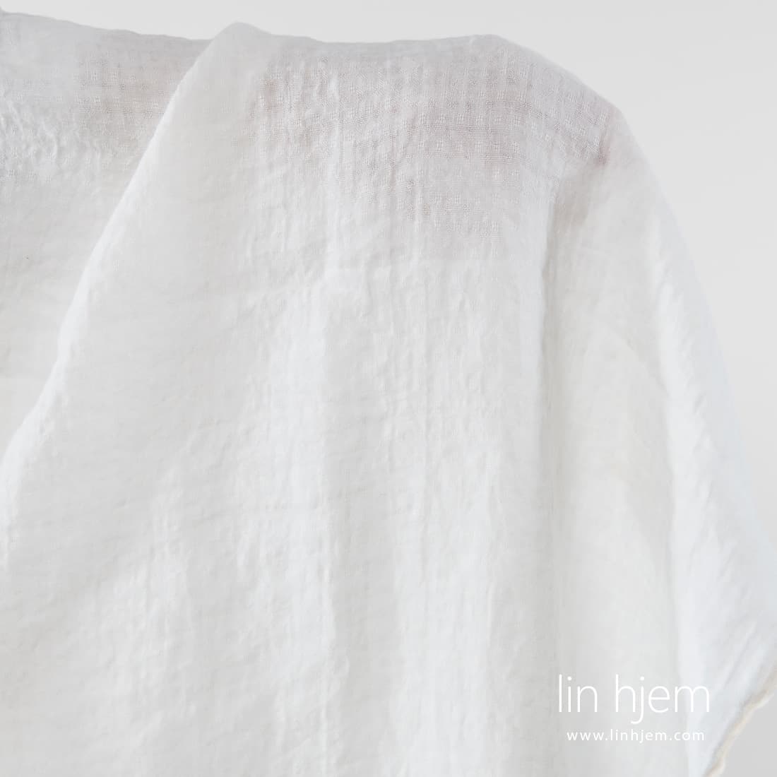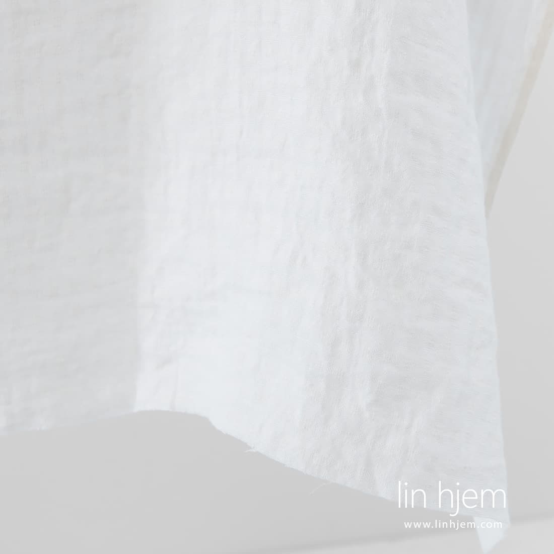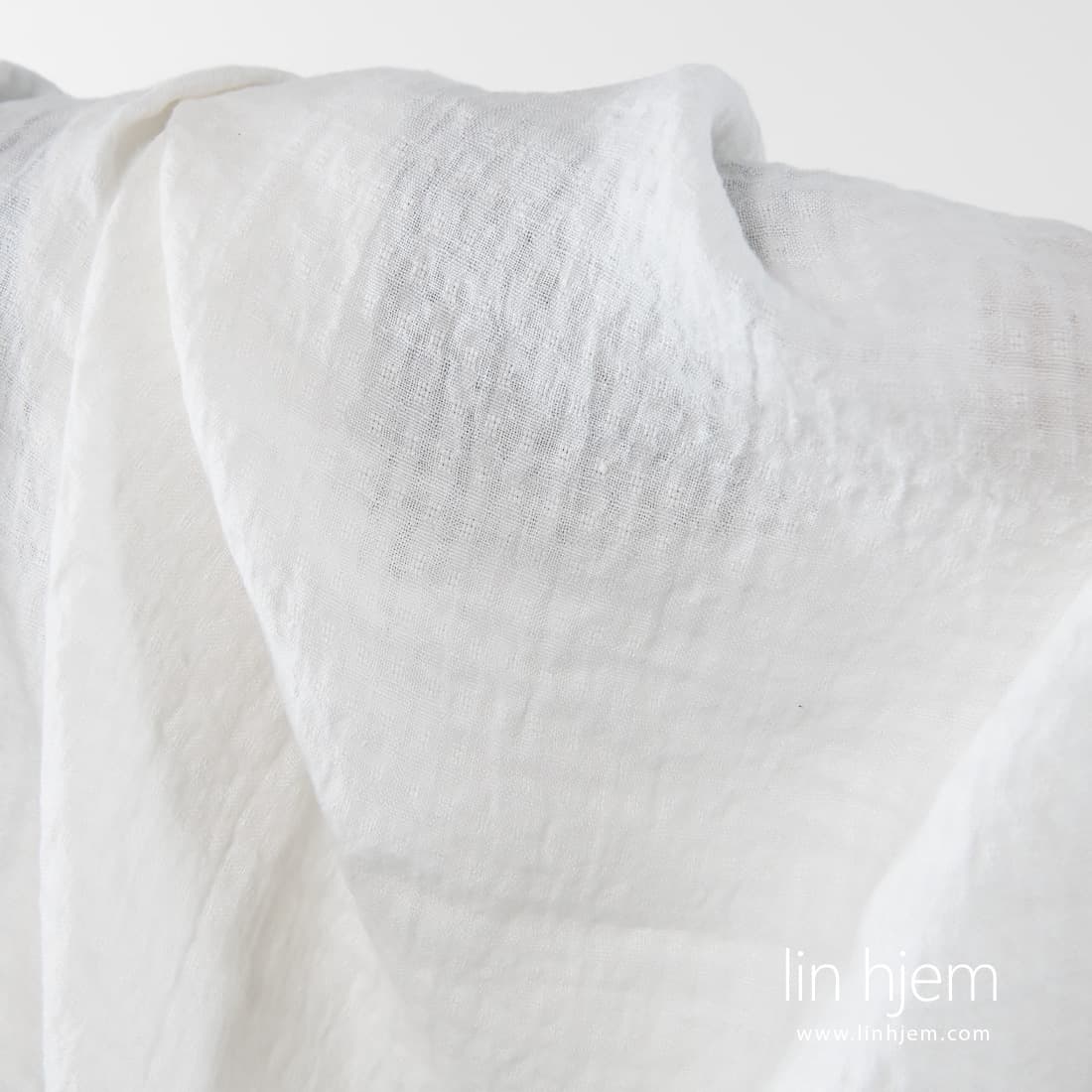 Vasket melkehvitt linstoff med små ruter. Lett, holdbart, tettvevd. Stoffet ble spesielt vasket derfor er det mykt, skånsomt og behagelig mot huden.