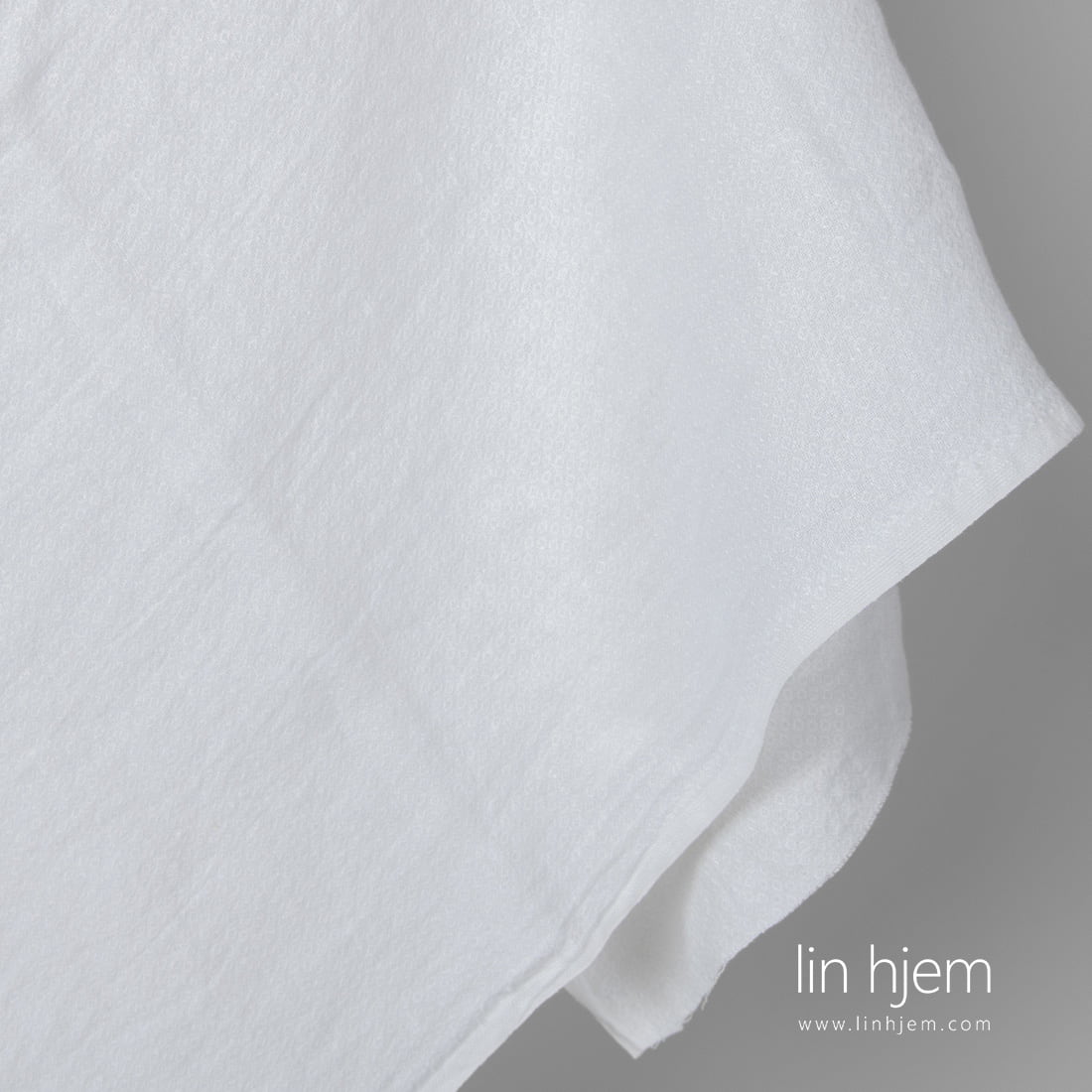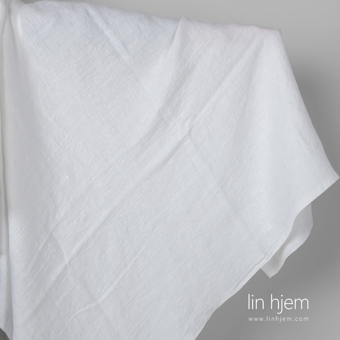 Vasket kritthvit linstoff i små romber. Stoffet er spesielt vasket som gjør dette produktet ekstremt mykt og skånsomt. Av dette 100% linstoffet kan dere sy klær, gardiner, sengetøy, spisebord og kjøkken produkter.