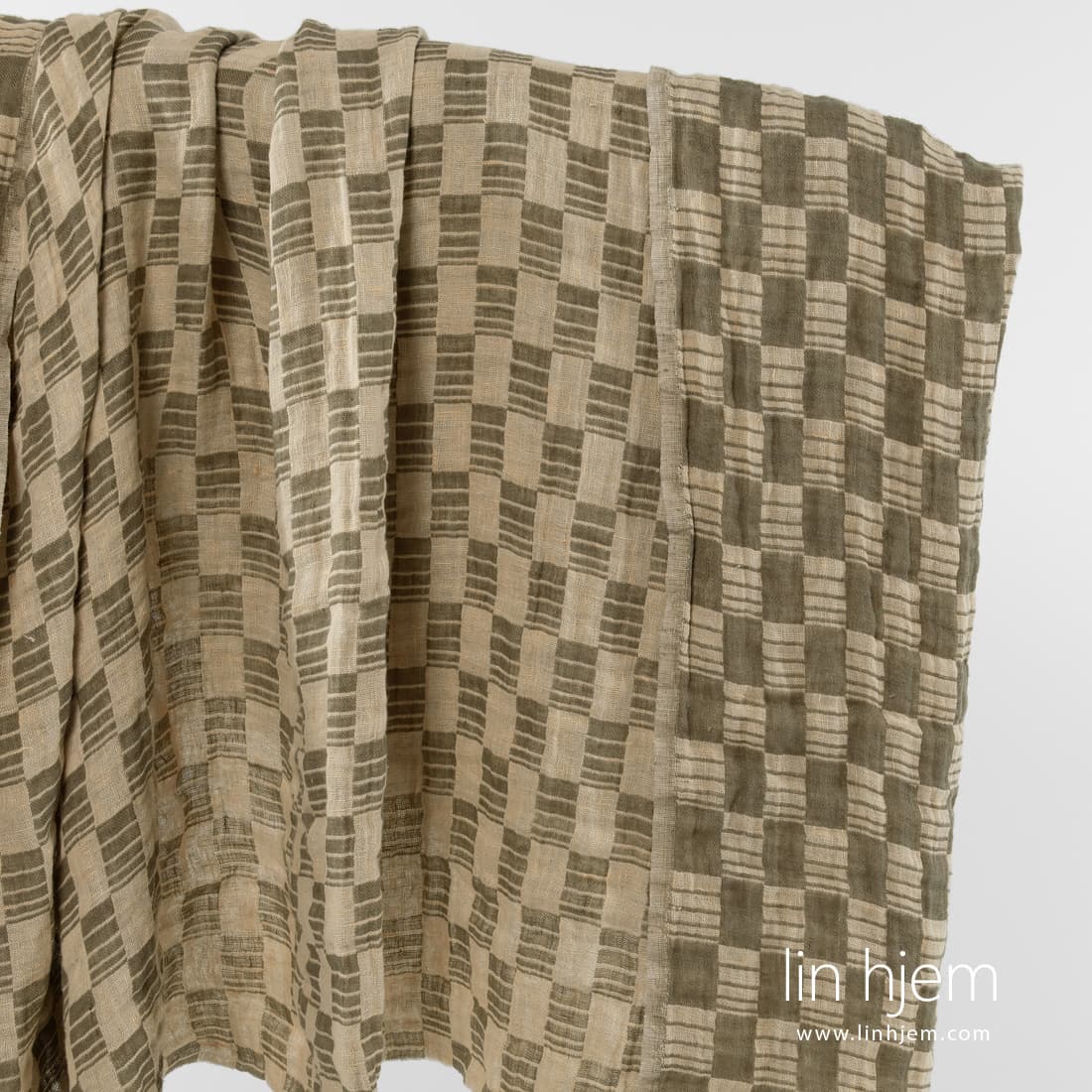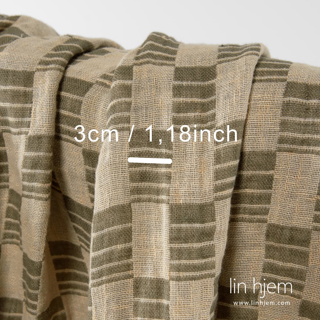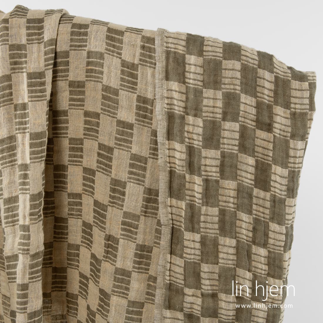 Vasket linstoff i grønne og gule ruter. Tosidig, 2-lag, holdbart, tettvevd. Stoffet ble spesielt vasket for å gjøre stoffet mykt, skånsomt. Passer til å sy klær og hjem tekstil produkter.