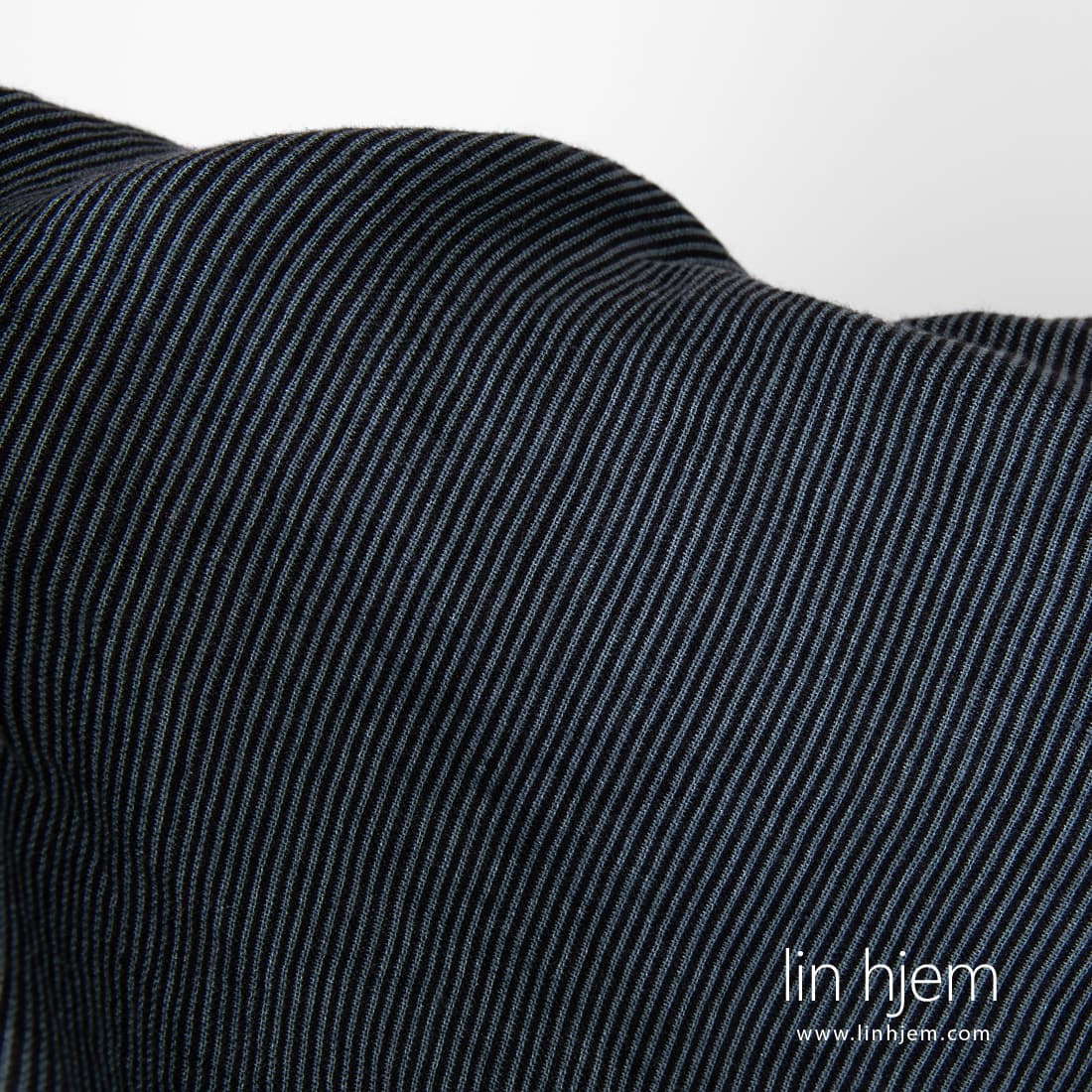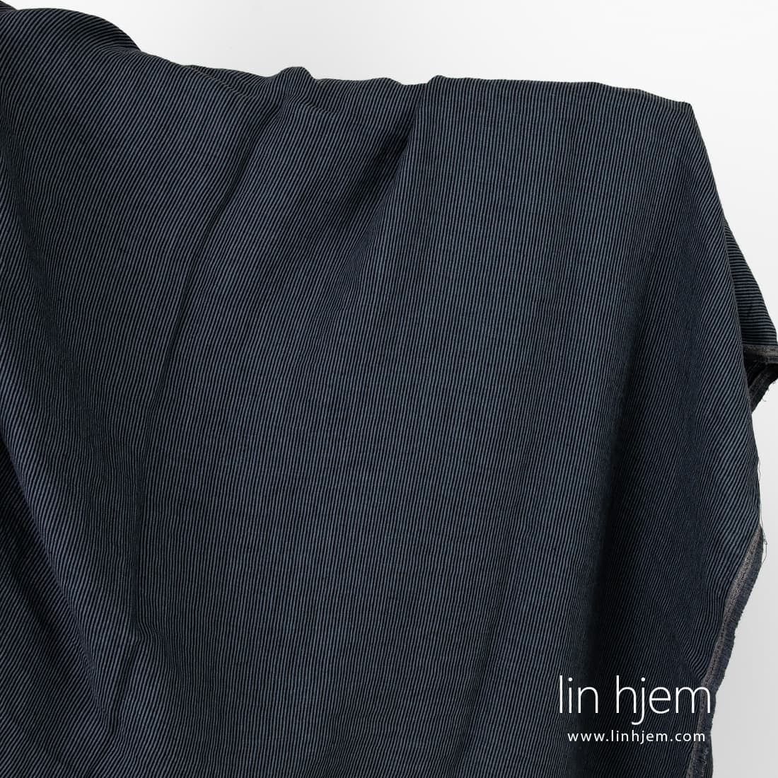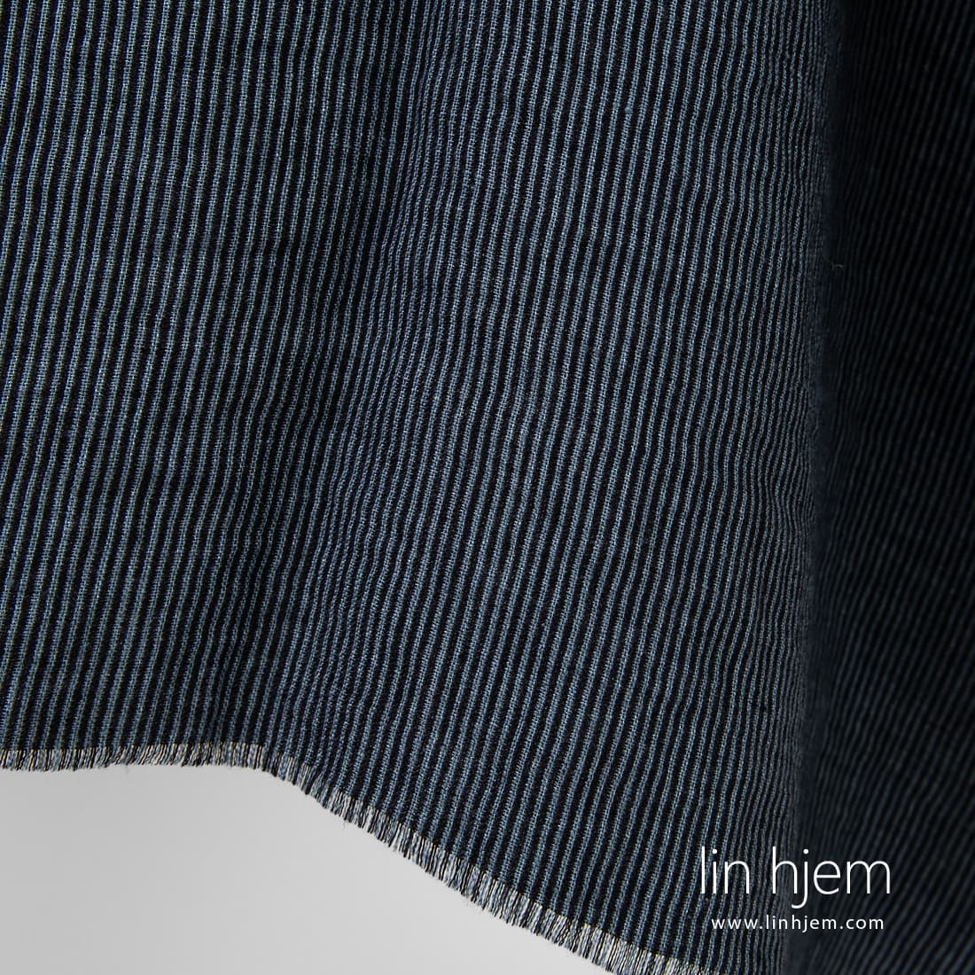 • Svart-grått stripete vasket linstoff.