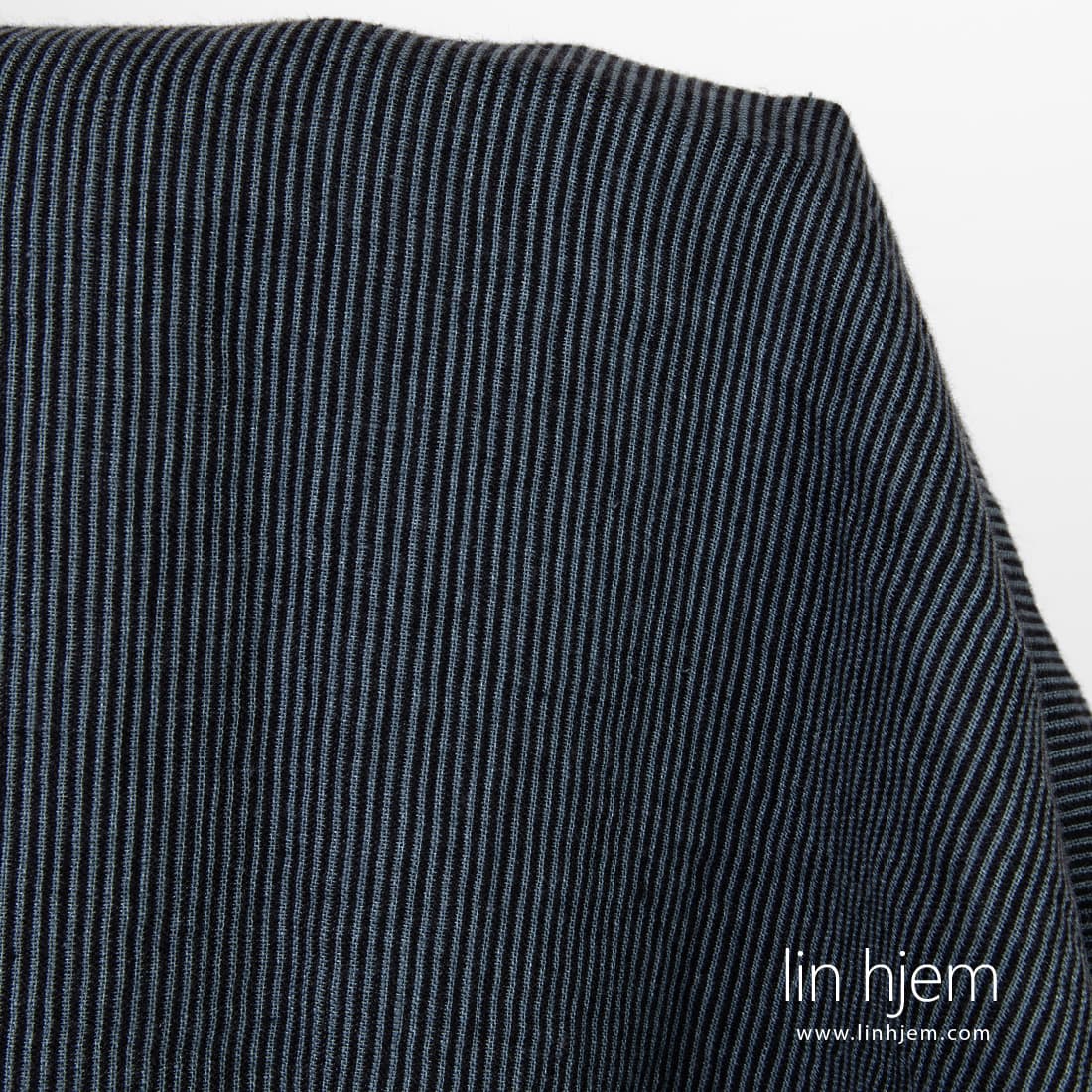 • Vasket linstoff i svarte og grå striper.