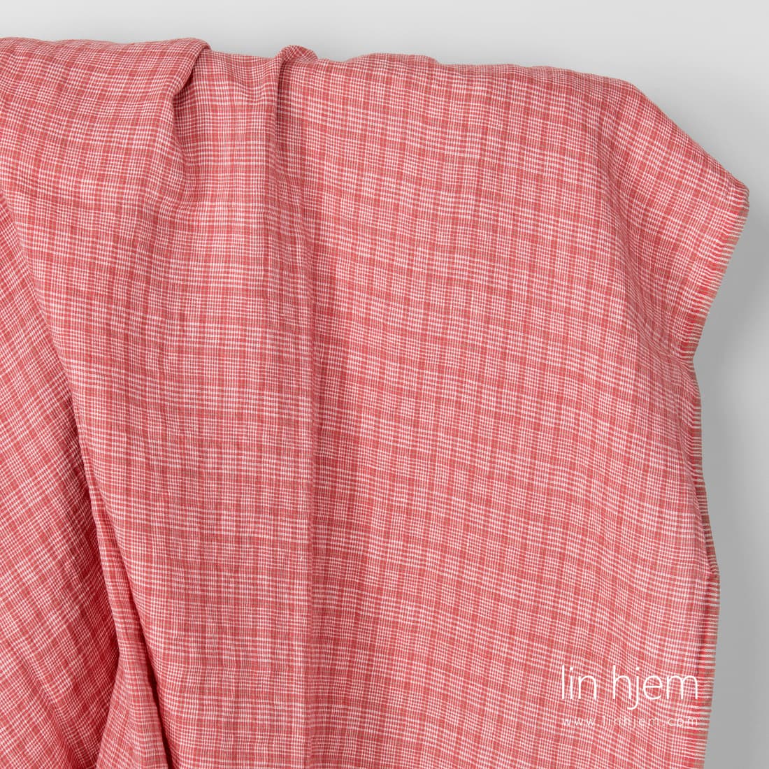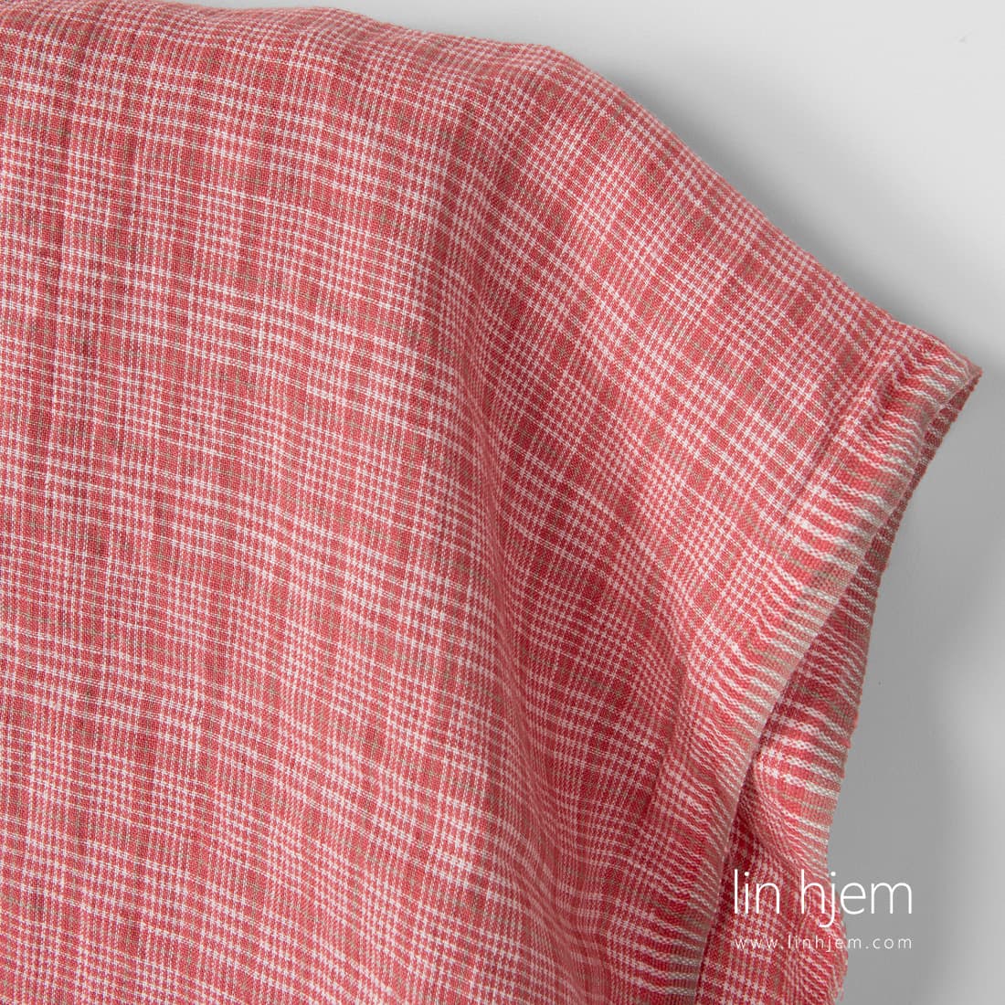 Vasket linstoff med rosa, melkehvite ruter og tynne sand farget striper. Dette stoffet er veldig lett, tettvevd og varig. Passer perfekt til å sy klær, sengetøy, spisebord produkter, gardiner. Spesielt vasket med ny teknologi som gjør dette linstoffet ekstremt mykt, skånsomt og behagelig mot huden.