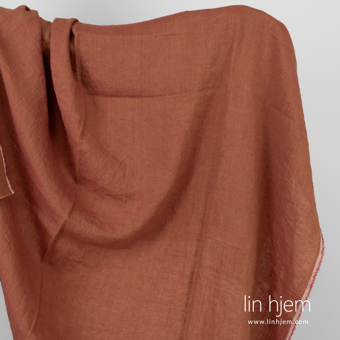 • Rødt-brunt vasket linstoff.