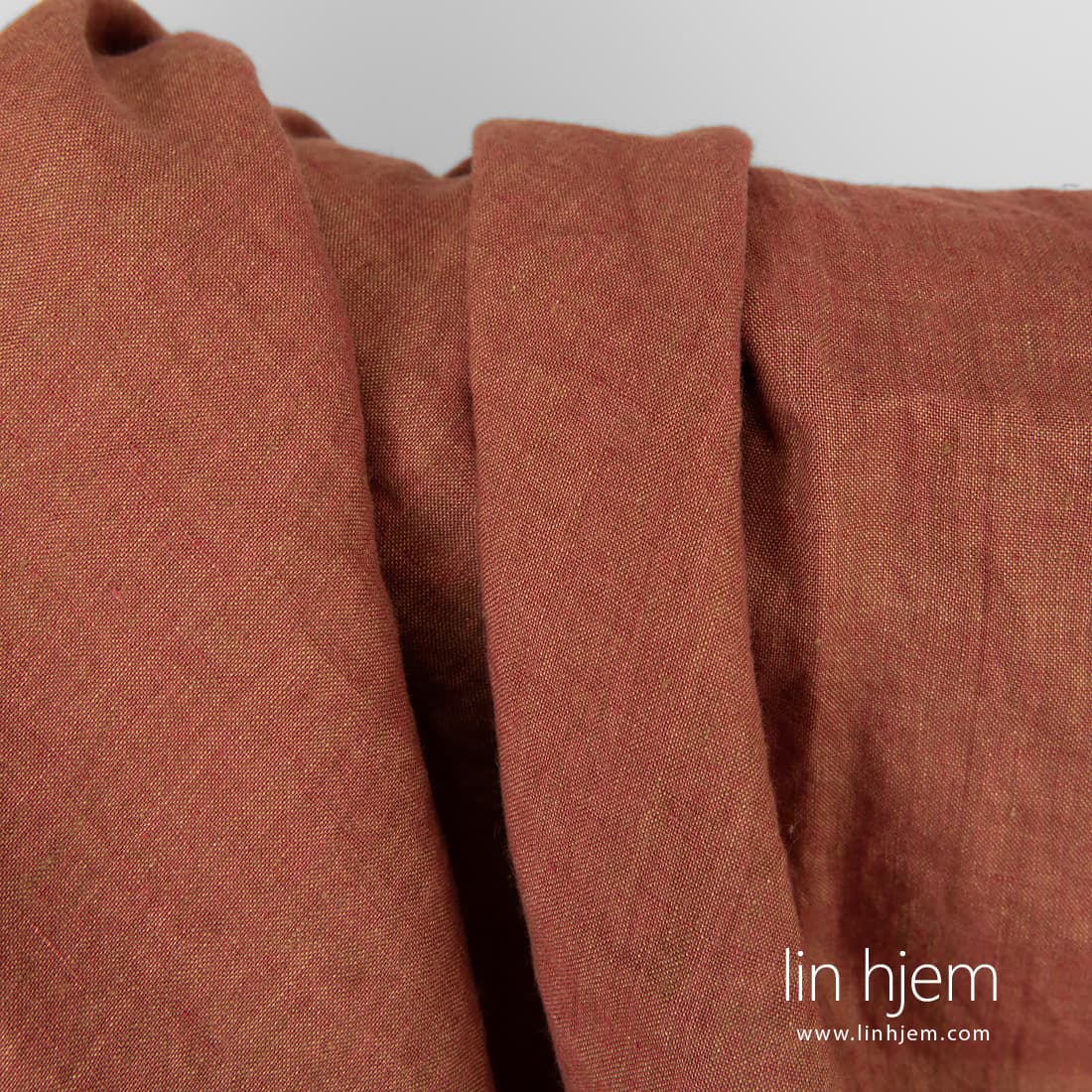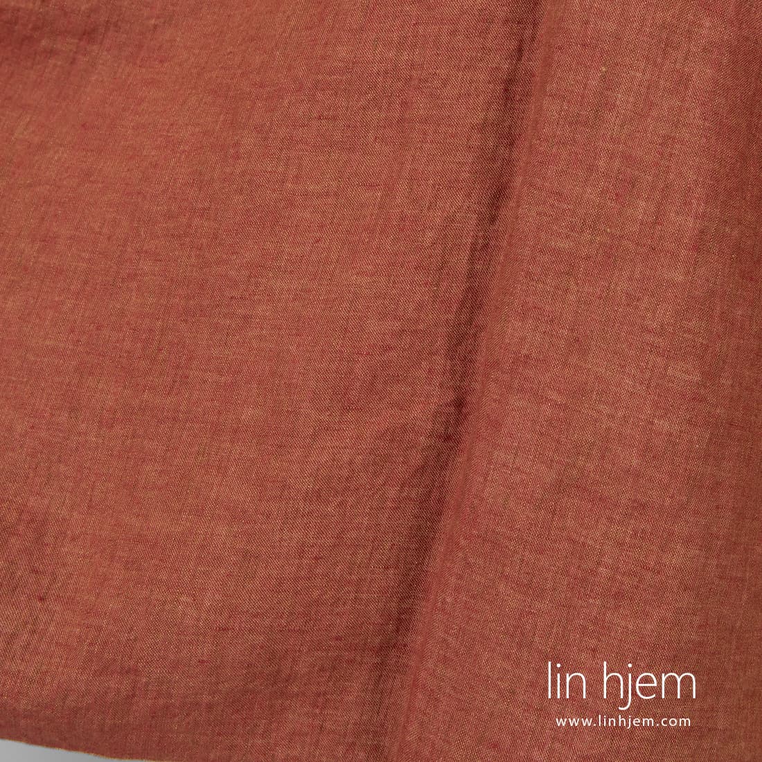 • Vasket melange rødt-brunt linstoff.