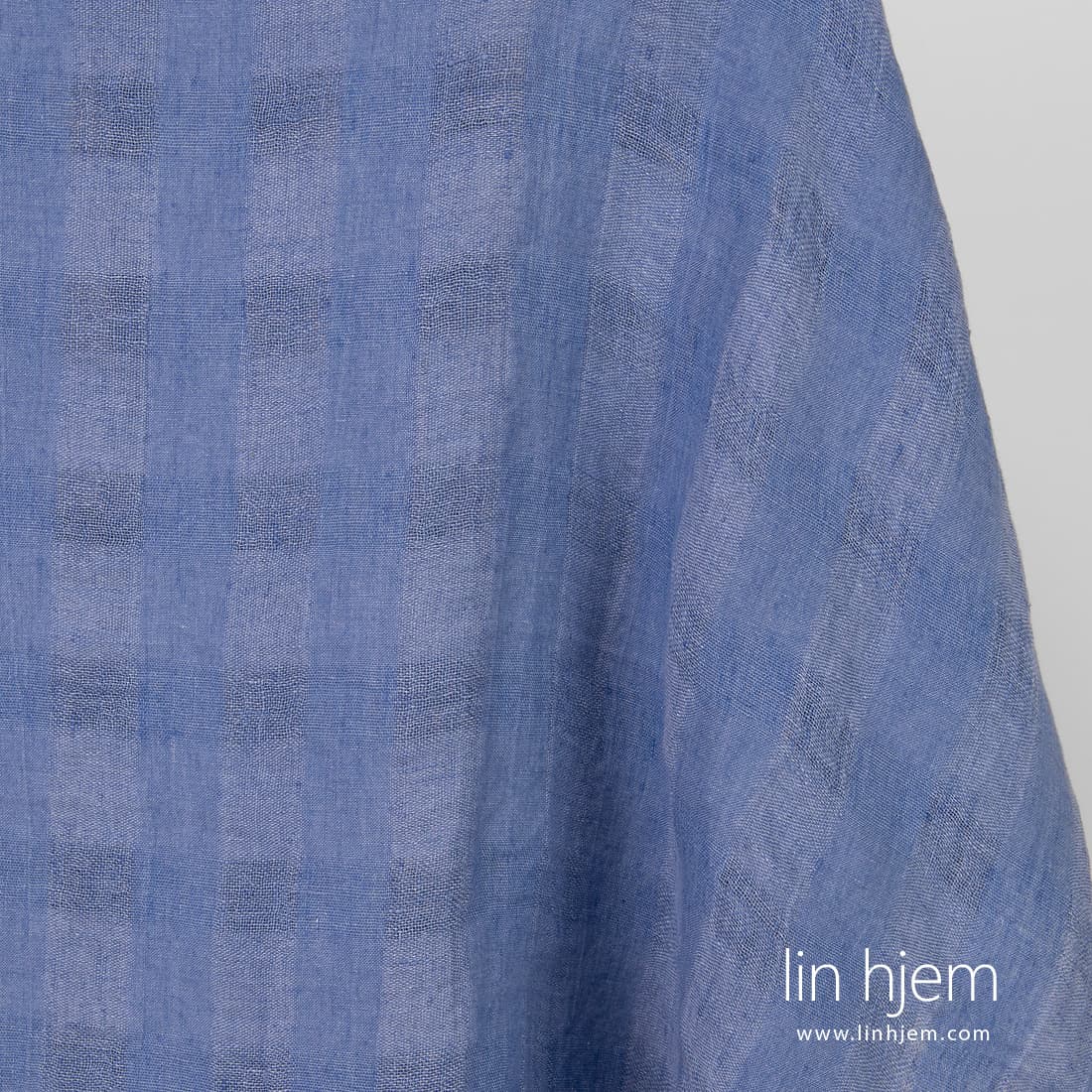 • Gjennomsiktig blått linstoff i ruter.