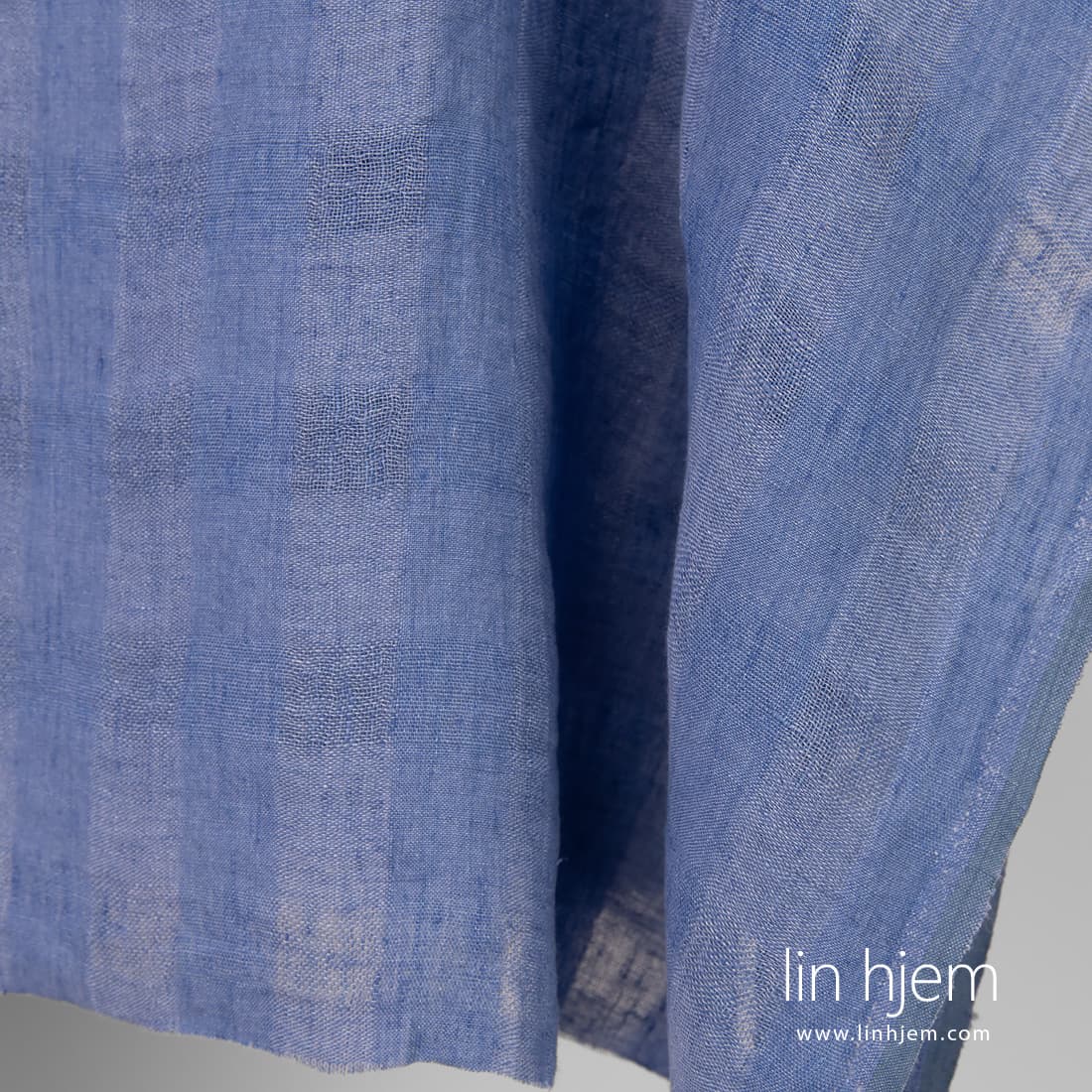 • Gjennomsiktig blått vasket linstoff.