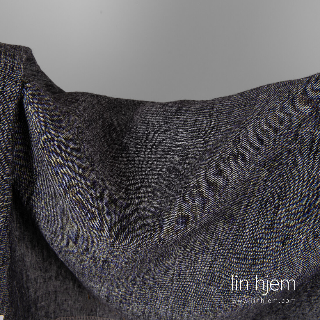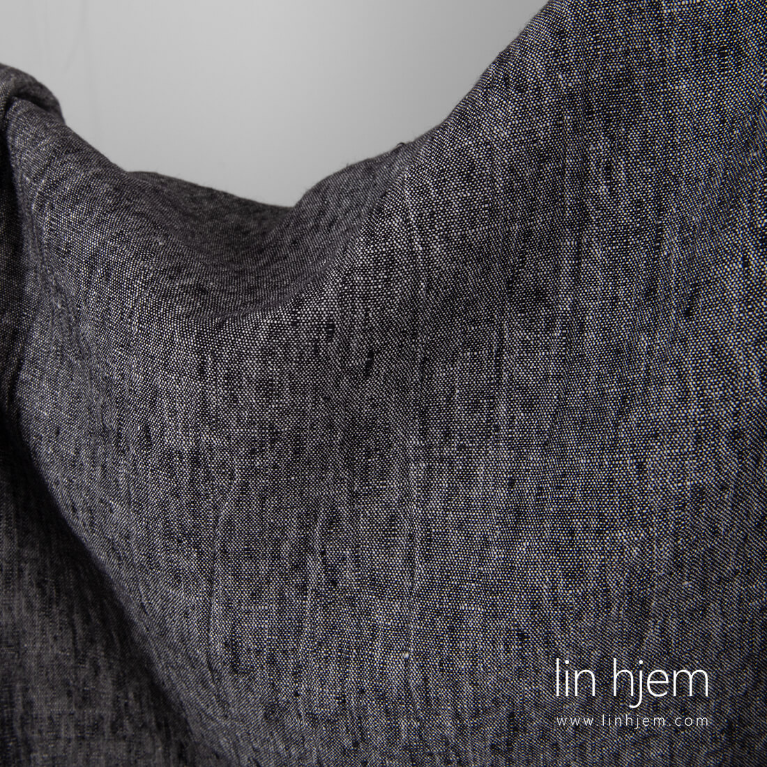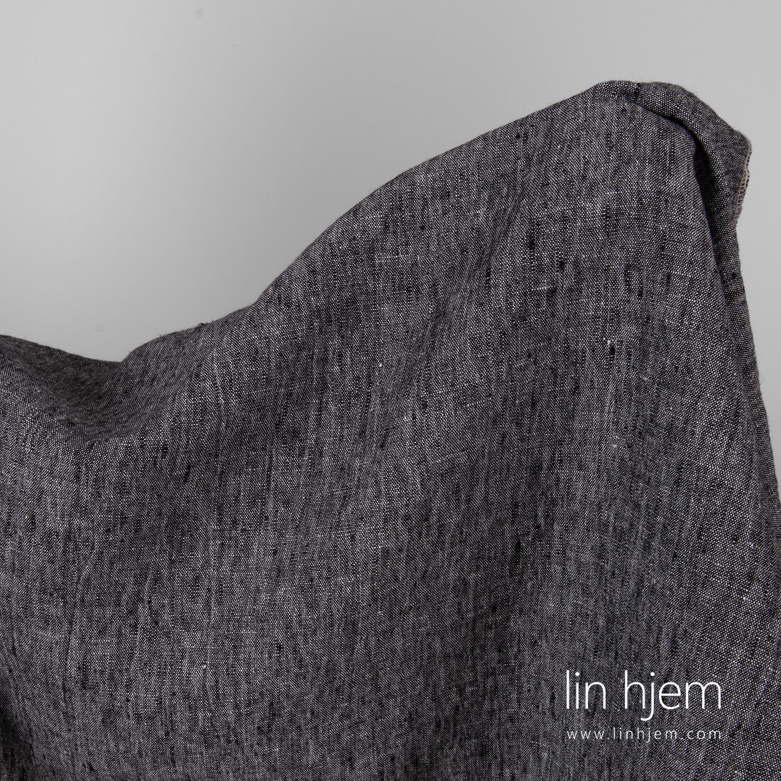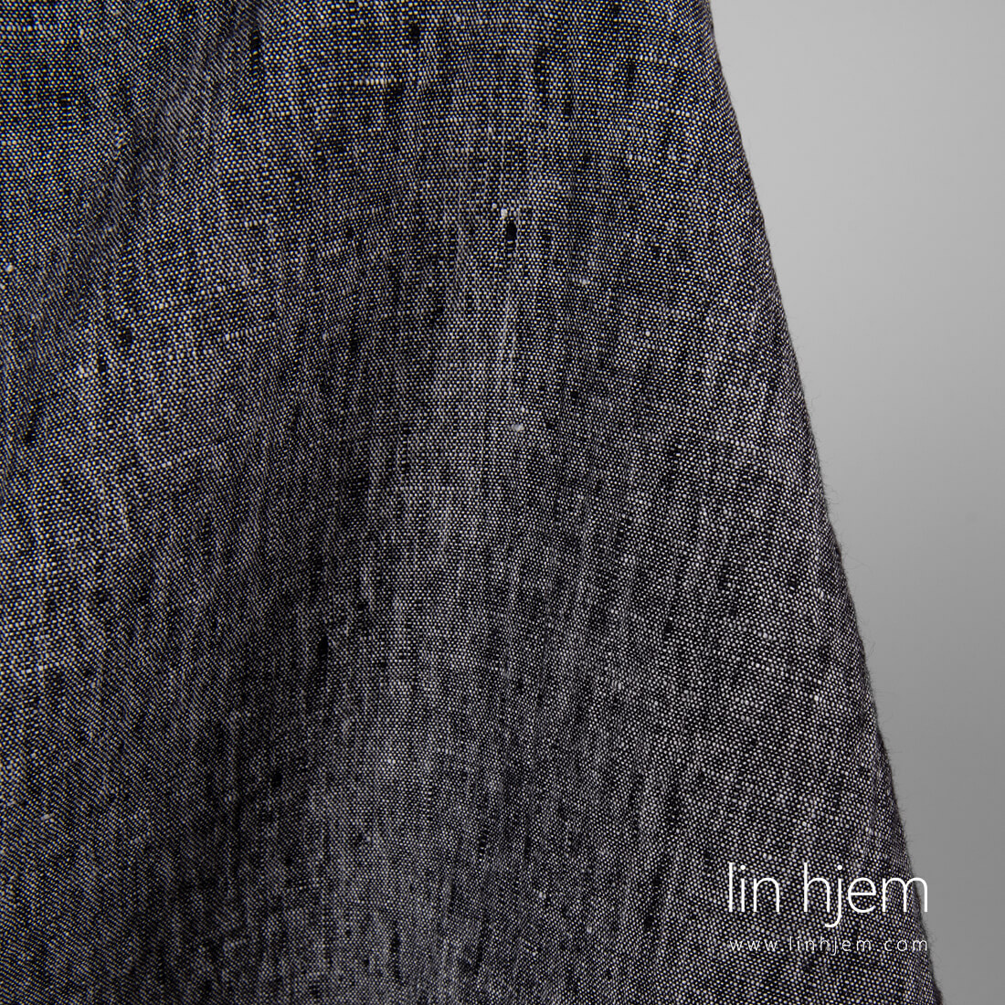 Vasket svart/hvitt melange linstoff er ganske tungt, holdbart, tettvevd. Spesielt vasket stoff som er mykt, skånsomt og behagelig mot huden. Krymper ikke. Passer til å sy klær og hjem tekstil produkter.