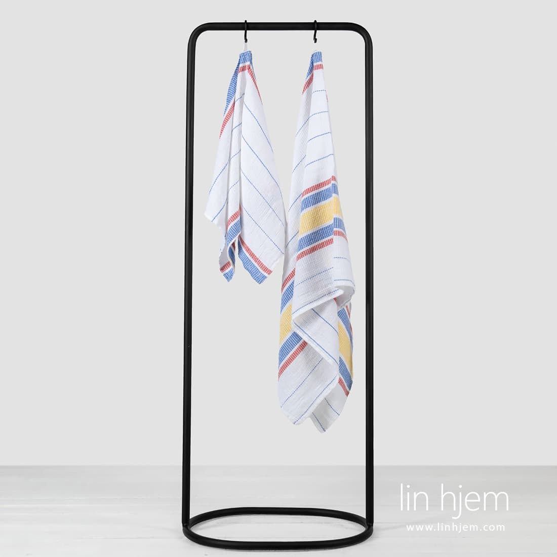 - Farge: vevd av knall hvit, blått, gult og rødt garn