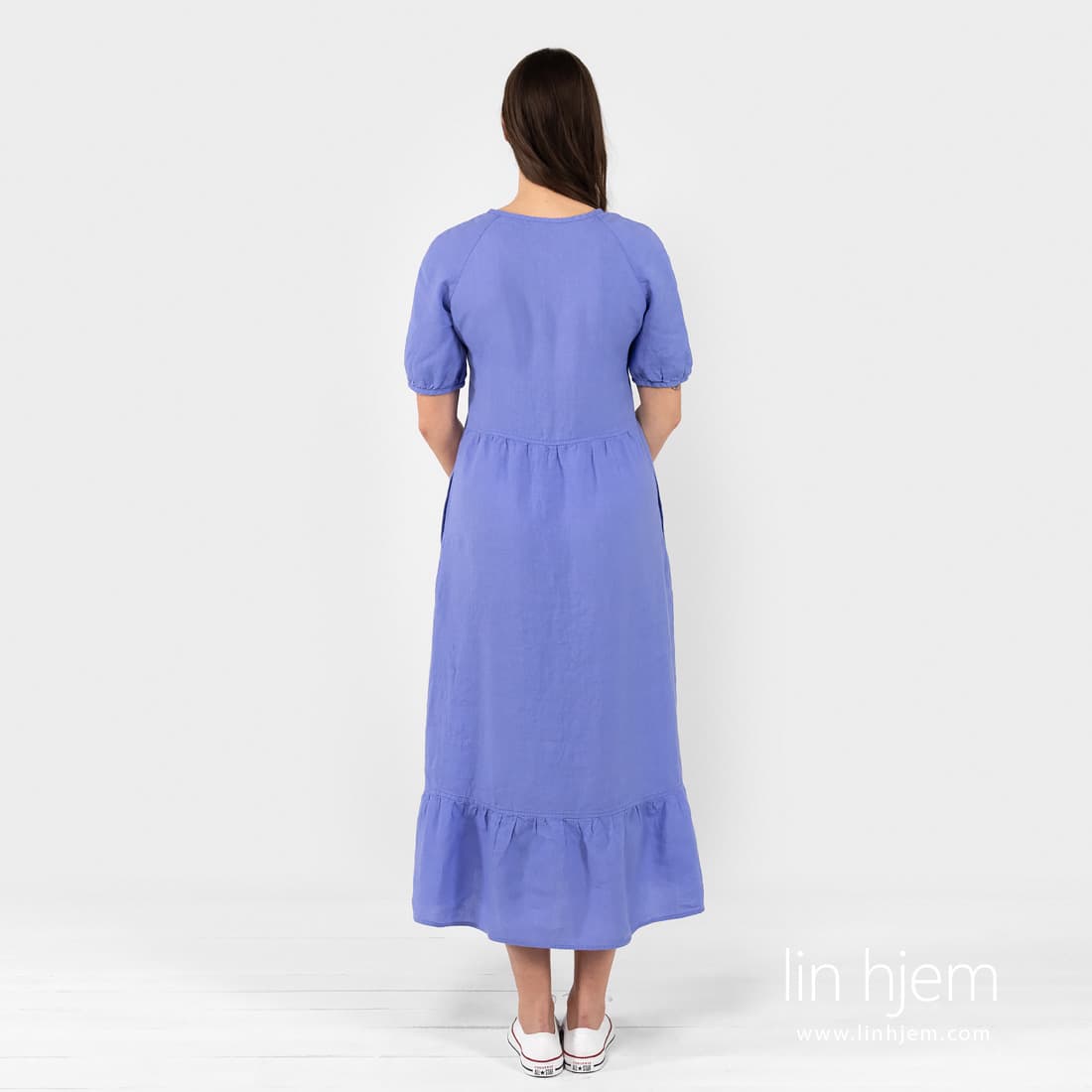 - Jenta på bildet har på seg størrelse 38 av denne kjolen (høyden hennes er 180 cm).